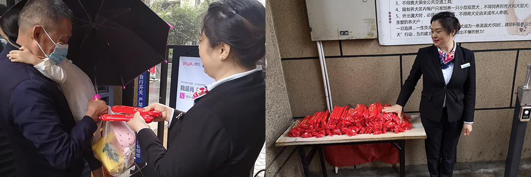 重阳节当天,御湖上园为园区老人派发长寿面。在给老人送上长寿面的同时,物业工作人员不忘与老人亲切交谈,切实了解他们的生活情况,并叮嘱老人们要注意身体健康、添衣保暖,有什么困难及时向物业服务中心寻求帮助。
