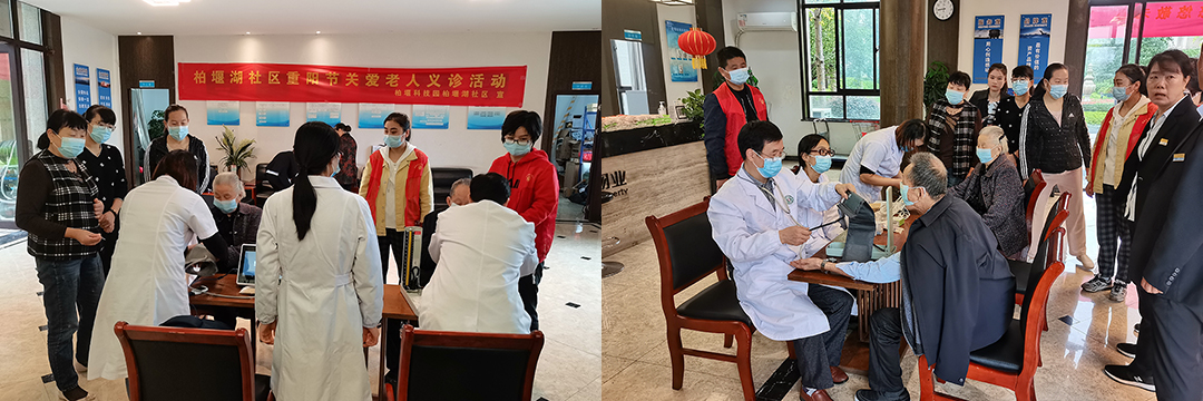 御湖庄园联合柏堰湖社区开展重阳节关爱老人义诊活动。活动现场十分热闹,老人们纷纷赶来咨询,义诊团队为园区老人免费测量血压和血糖、提供用药指导、膳食营养咨询等,义诊结束后物业工作人员还给检查身体的老人们发放了长寿面。此次活动的开展,既提高了老年业主们的保健意识,也营造了良好的爱老助老社区氛围。