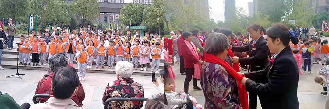 在阜阳新华城东郡,为了让儿童了解重阳节的风俗及民族文化内涵,培养儿童敬重老人、关心老人的良好品质,新华城东郡物业服务中心联合新华城幼儿园开展唱红歌、送礼品慰问老人社区活动。