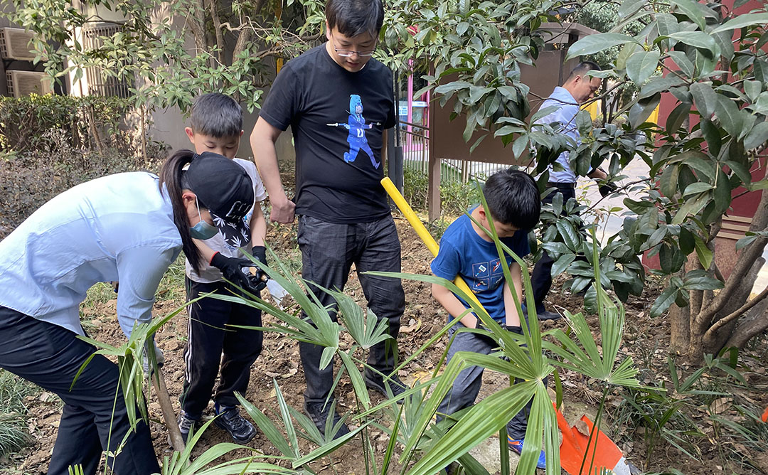 活动当天,一些小业主看到我们在劳作,也加入了进来,除草的除草、松土的松土,每个孩子都只有一个想法,那就是让“绿”成为小区的主色调。学府花园业主身体力行、挥洒汗水,用行动来表达他们对美好大自然的热爱以及对本小区绿化的关心。