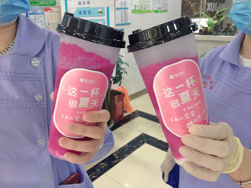 做新华家人,我们来宠你。为感谢医护人的辛勤付出,我们特为在医院辛苦工作的业主朋友们送到一份来自家人的关心,新华天一服务的客服小姐姐精挑细选红心火龙果和品牌冷藏酸奶,为确保口感纯正,仅提前1小时制作,只为把新鲜的、营养的夏日果饮送给医护人,饱含爱心和衷心祝福!